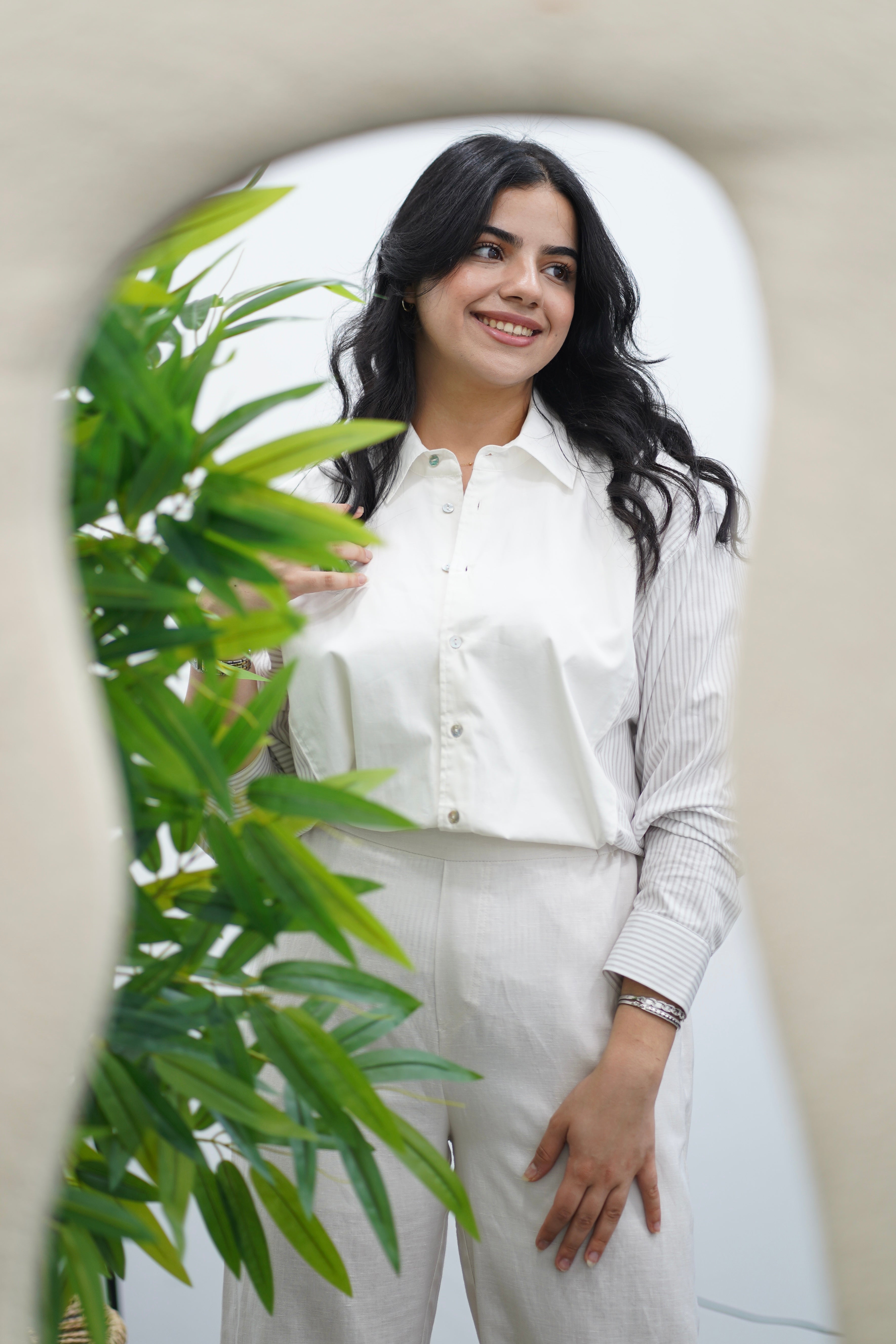 Apportez une dose de bonne humeur à vos tenues avec cette chemise à rayures beige , confectionnée...