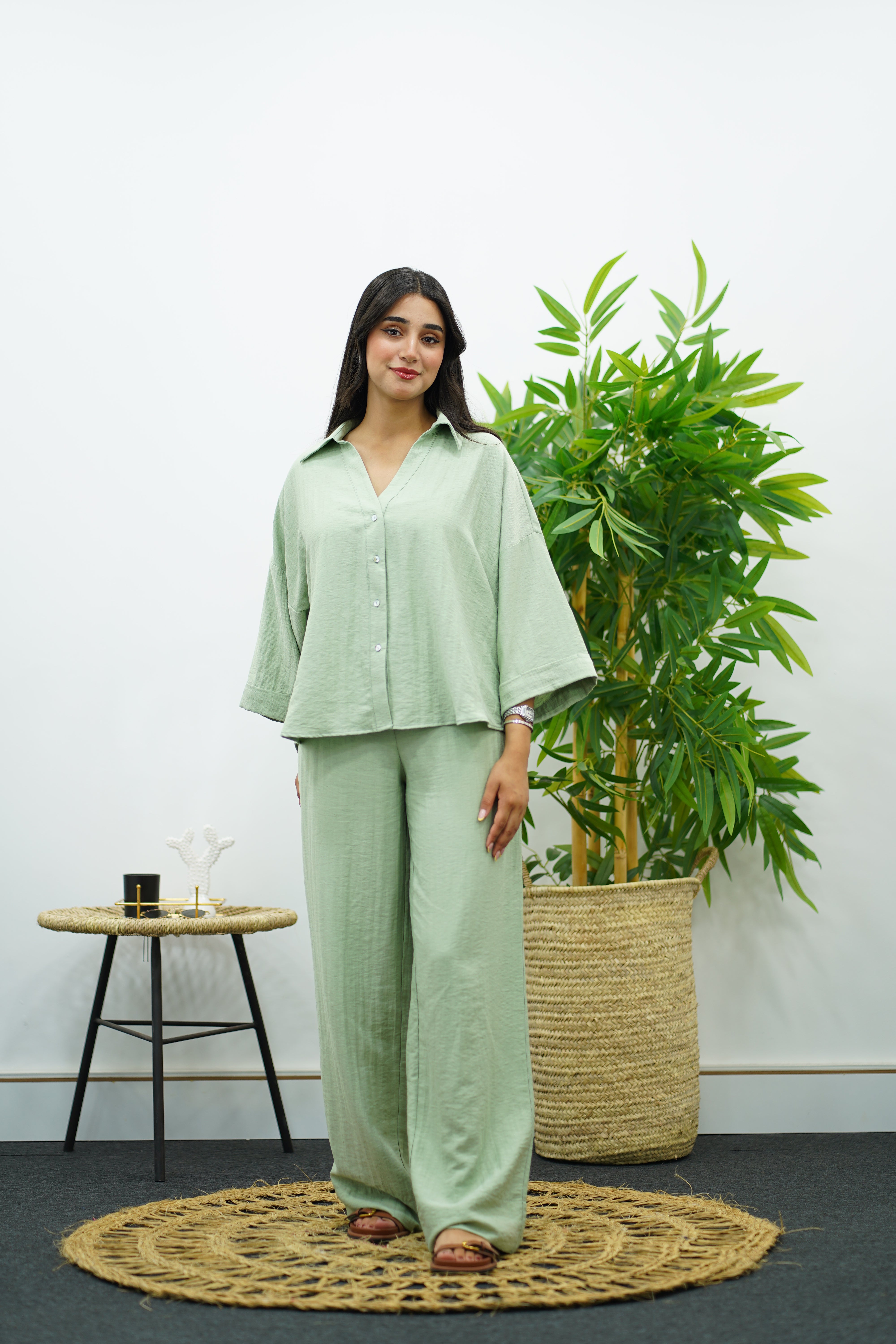Laissez-vous séduire par cet ensemble en crêpe, parfait pour les journées ensoleillées comme pour les moments de détente élégante. Composé d’une chemise ample à manches 3/4 et d’un pantalon large taille haute, il allie confort, respirabilité et style épuré.