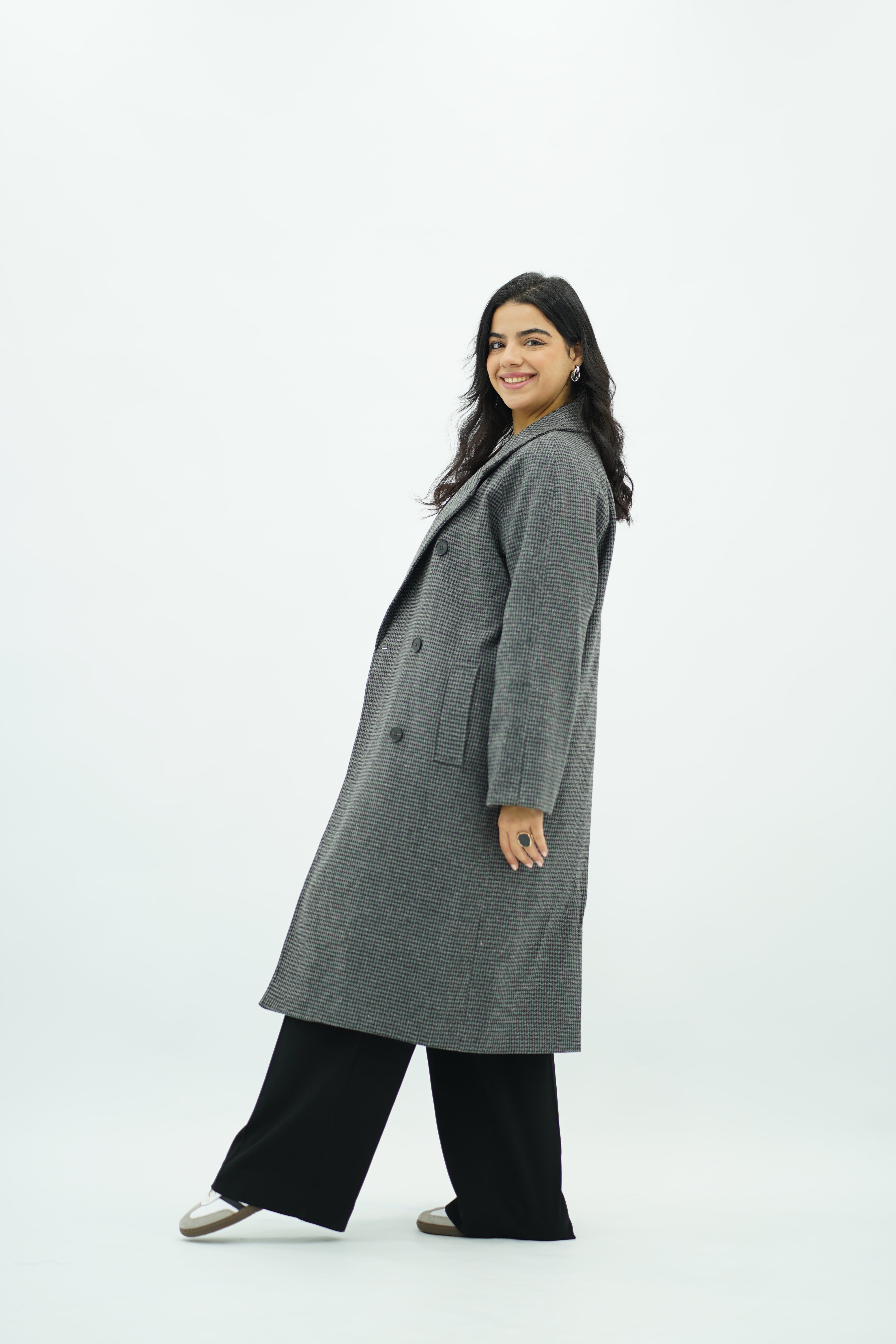 Manteau Gris oversize pied de poule