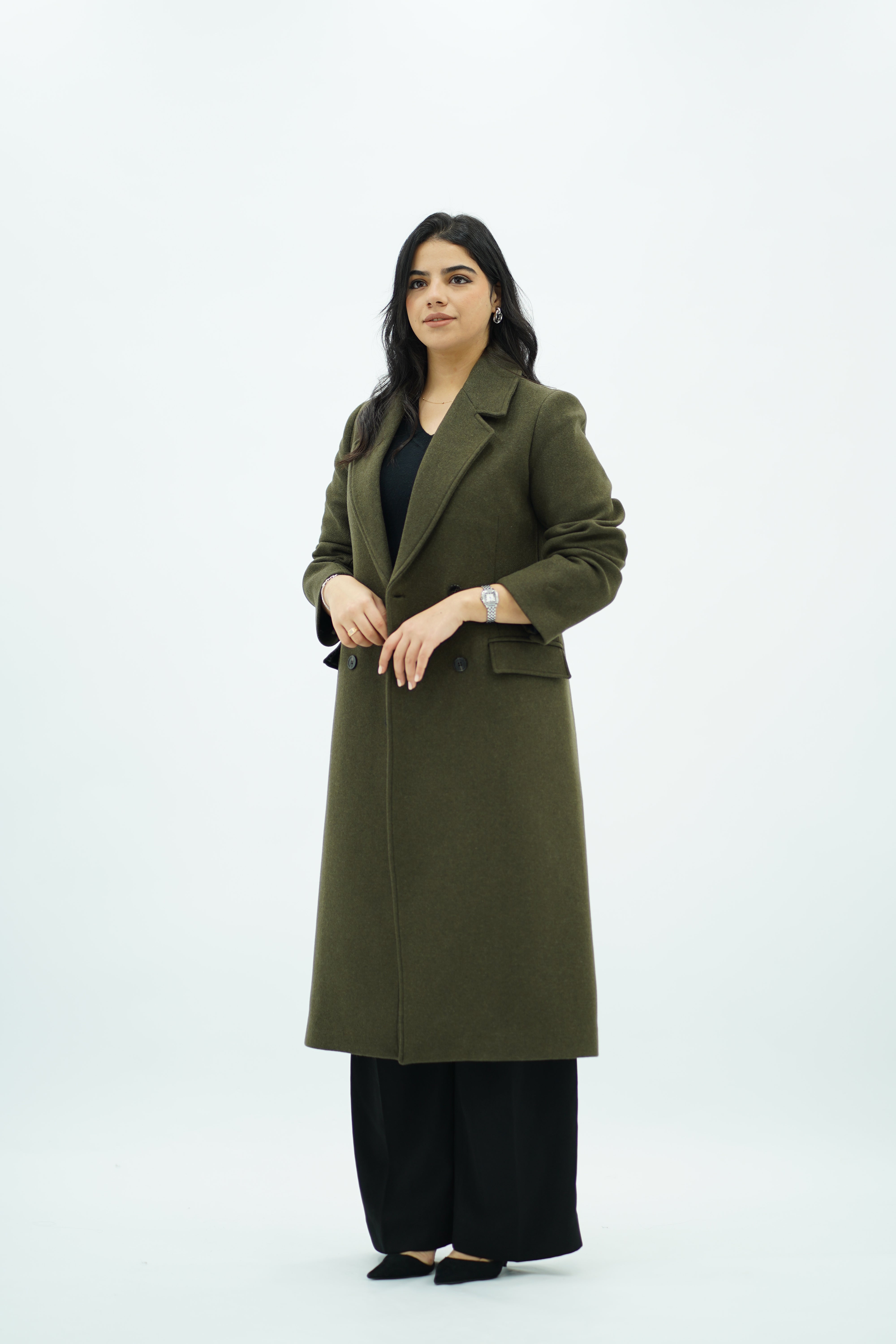 Manteau kaki long à la coupe élégante et structurée, dans une teinte beige intemporelle. Son design épuré et ses boutons raffinés en font une pièce idéale pour un look sophistiqué, parfait au quotidien comme pour des occasions plus habillées.