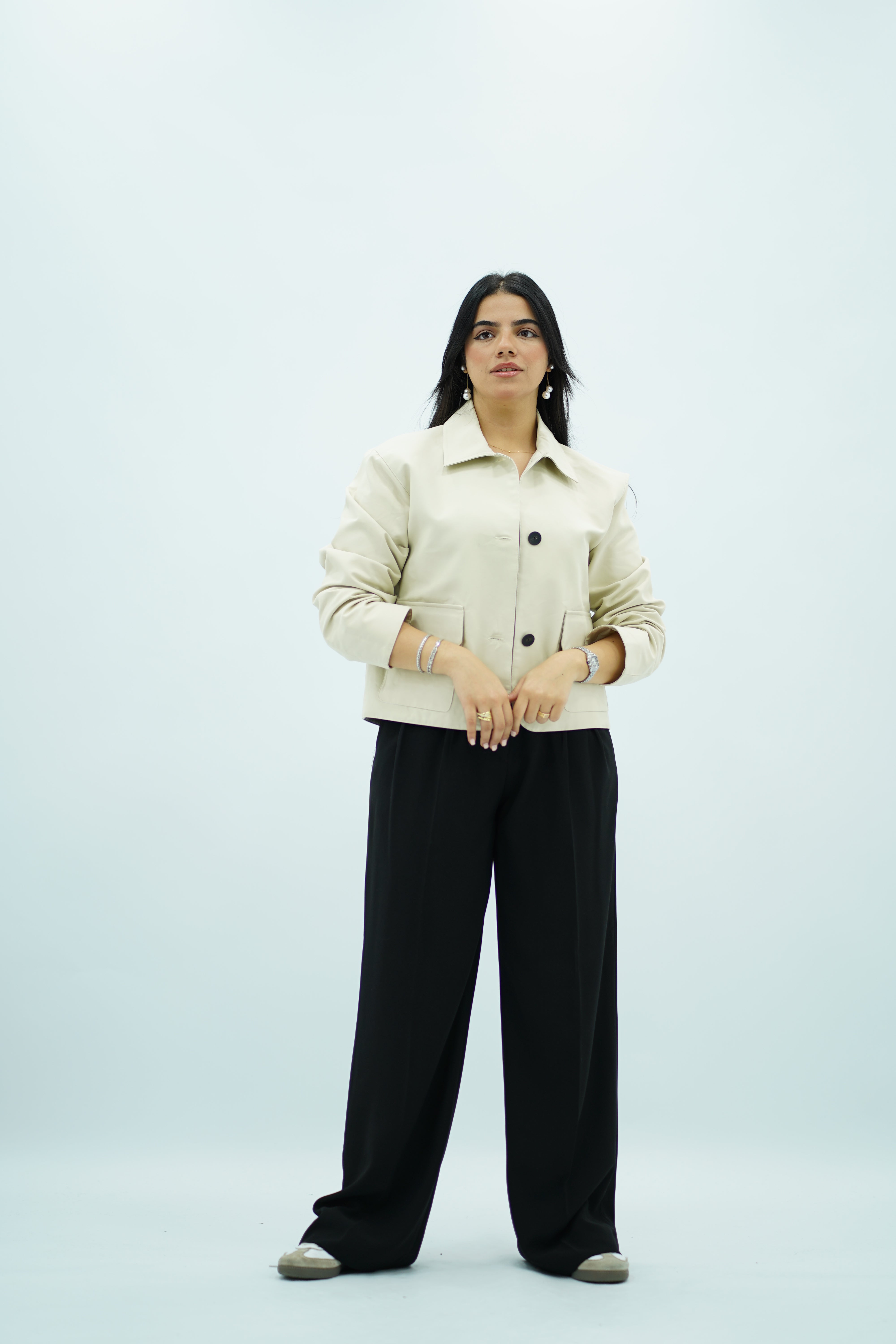 Cette veste est une interprétation moderne du trench-coat classique, dans une coupe blouson courte et épurée. •...