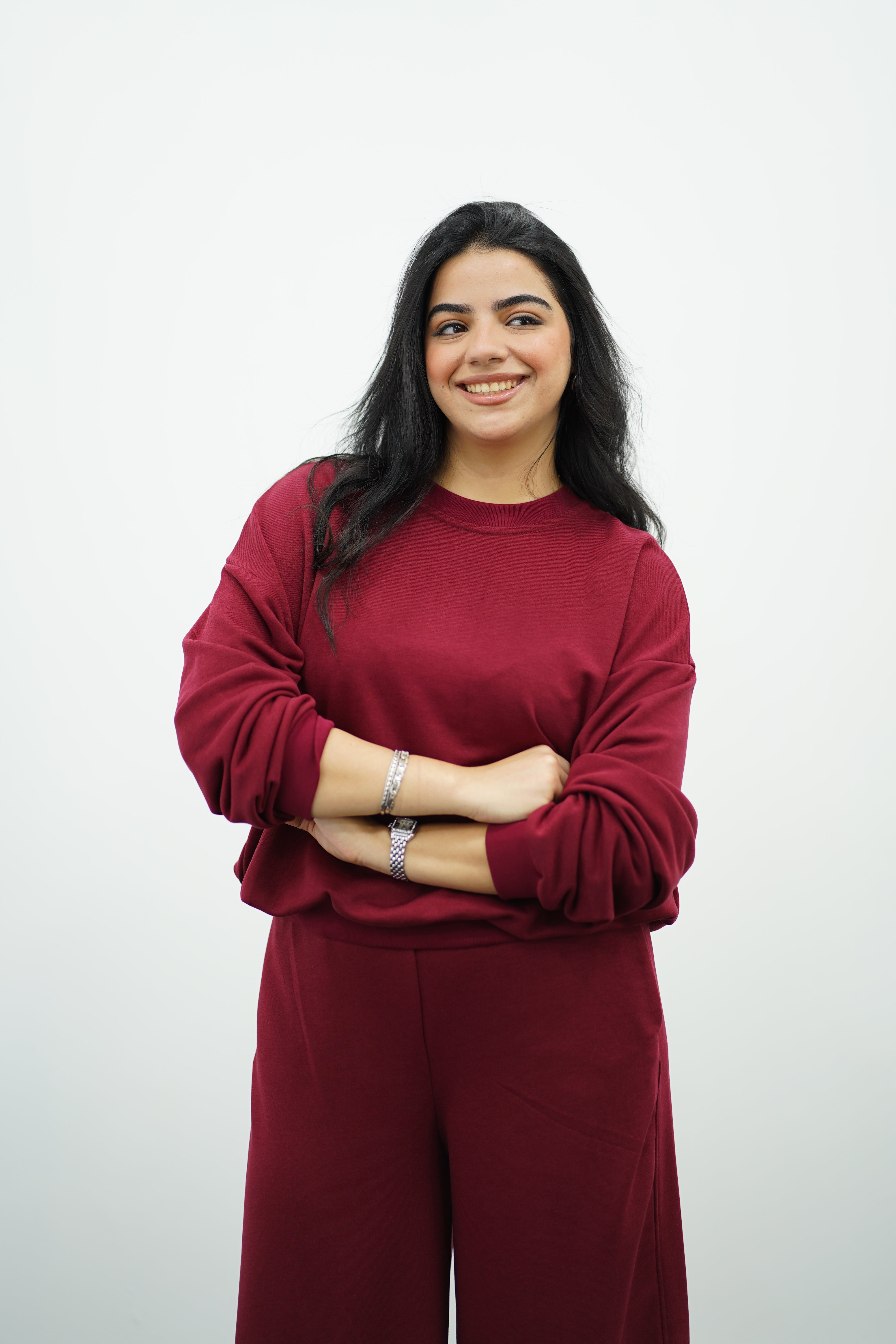 Il est parfait pour un week-end décontracté, une journée à la maison, ou pour être chic tout en se sentant à l'aise. La façon dont le pull est légèrement rentré dans le pantalon met en valeur la taille et ajoute une touche soignée à l'ensemble