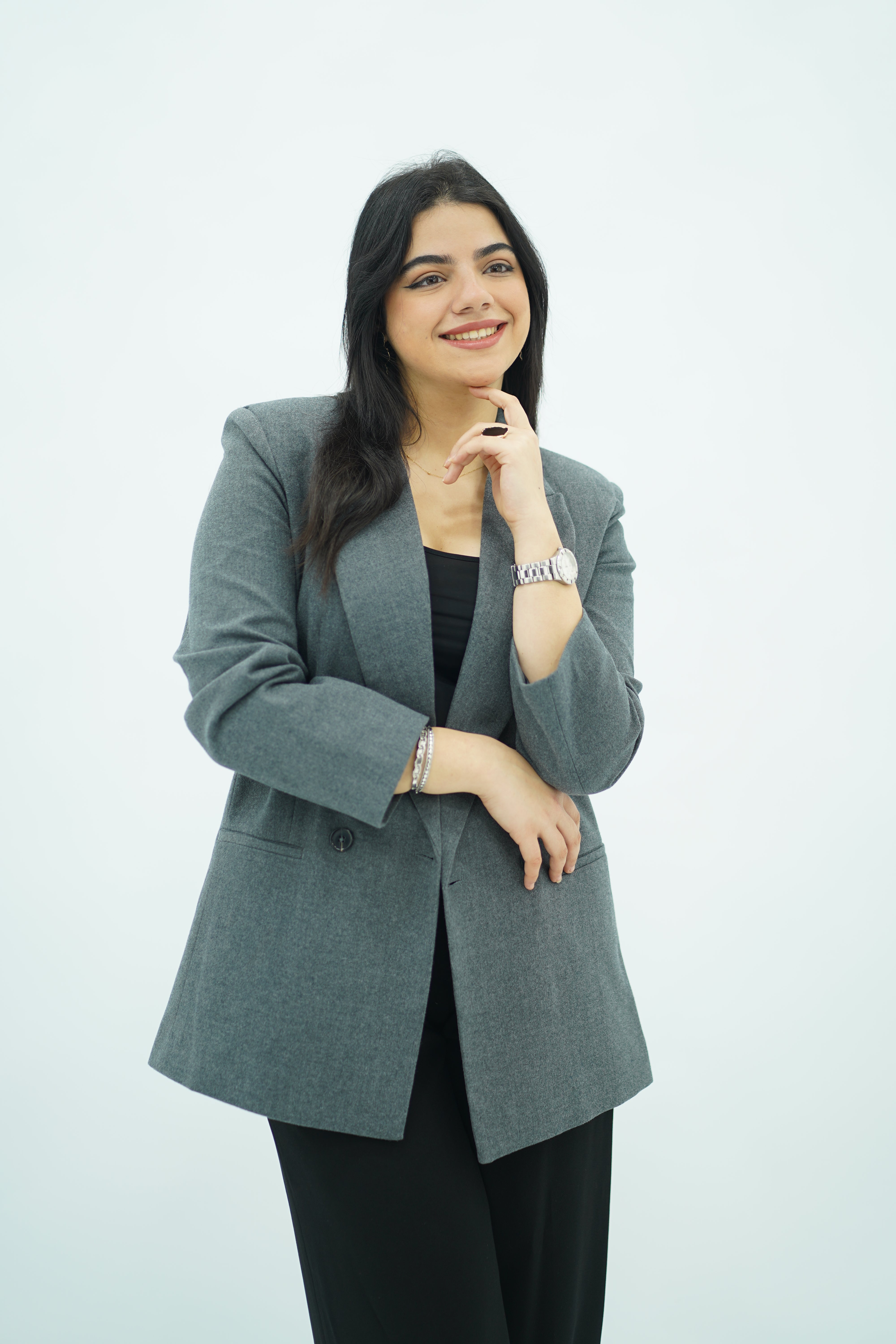 Veste blazer gris élégante, coupe droite et fermeture double boutonnage. Un modèle intemporel qui apporte une touche chic et professionnelle à toutes vos tenues, parfaite pour le bureau comme pour un look casual sophistiqué.