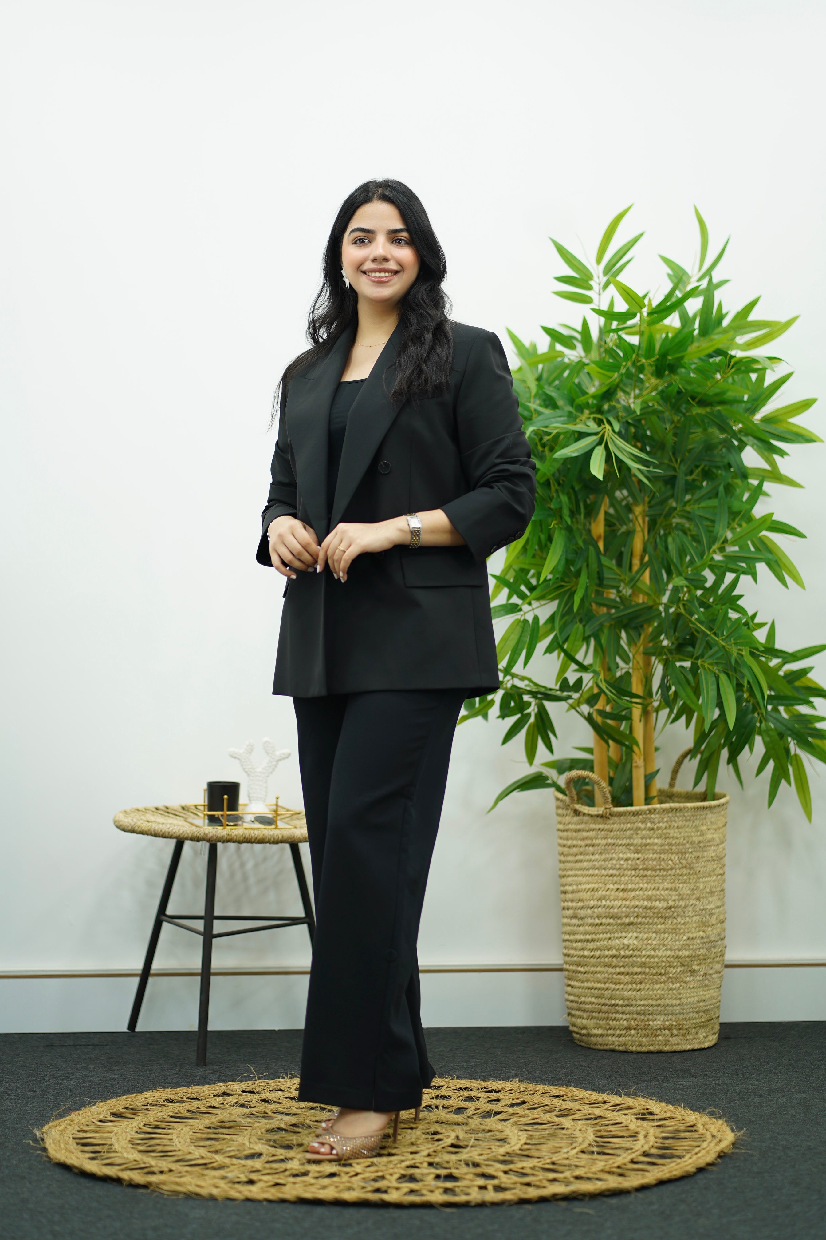 Apportez une touche de caractère à votre tenue avec cette magnifique veste noire, sublimée avec un détail unique sur les manches.